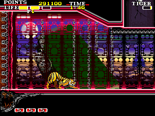 | 虎 点数:100pts 投げ:可 言葉通り虎です。攻撃方法は横方向への突進と、ジャンプしての突進攻撃。意外と強敵で真横に突進してきた場合は立ちもしくはしゃがみ攻撃で迎撃できるのですが、ジャンプ攻撃にはちゃんと合わせてジャンプしないと迎撃できません。適当に処理しようとすると思わぬダメージをくらうかもしれませんので、縦方向にうまく分身を設置して手堅く対処しましょう。なお、投げることも可能ですが、攻撃判定が出ている時に接触するとダメージになるので無理して狙わない方がよいでしょう。 |