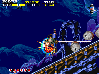 | ドラム缶 点数:100pts 投げ:不可 斜面を転がってきたり、跳ねてきたりします。攻撃判定は持っていますが、大きな驚異にはならないと思います。慣れない内は、凡ミスで体力を奪われないように注意しましょう。 |