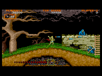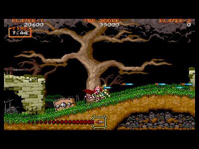 分身の魔法。若干プレイヤーとタイムラグのある分身を発生させます。地味な魔法ですが、ただでさえ強力な連射を誇るこの武器に、連射量と攻撃力が倍上乗せされるという、とてもおいしい魔法です。 当然、溜めにかかる時間はそれなりにあるので、ガンガン使うわけにも行きませんが、堅めの敵がいる直前などで溜めを作っておき、有効利用していきましょう。 ただし、対レッドアリーマー戦では、敵がいつも以上に暴れて危険なので、使わない方が無難でしょう。 |