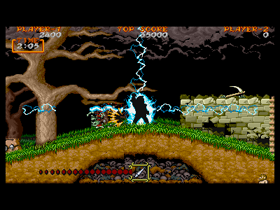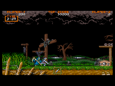 | 攻撃ボタンを押すと、真横に槍が飛んでいきます。連射は2連射まで。特にこれといった特徴が無く、どんな場面でも無難に使うことができます。苦手な武器を取った後、この武器が出てきたら、無難に乗り換えが可能。速度がやや遅めなのが、欠点といえば、欠点です。 ただ、本当の意味で特別強みのある武器でもないので、自分が慣れた武器があるのなら、早急に乗り換えた方が良いでしょう。 ゲームに慣れるまでは、これを使い続けるのも、一つの手です。 |