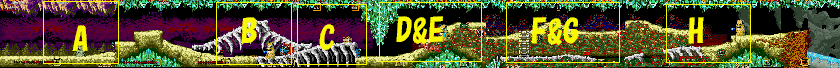| C地点:3つめの宝箱 右図の場所を通過すれば出現します。宝箱を開けてしまい、中の武器が必要で無いときは、当然ジャンプしてかわすのですが、この辺りは骨の隅などの変則的な場所から死神が多数出現します。つまらないダメージを受けないように注意して下さい。 |