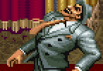 500 | ラスボスである、キングピンとの戦いの時のみ現れる、ある意味レアなキャラです。彼も、キングピンのレーザー攻撃などに巻き込まれて死ぬ可能性が高く、可哀想なキャラです。 ちなみに、このスーツタイプのキャラは、プレイヤーキャラがダメージを受けたり、転倒したりすると、左記のポーズでゲラゲラ笑いやがります。非常に頭に来るリアクションです。笑われるのも悔しい話なので、とっとと処刑してやりましょう。 |