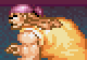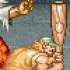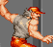 400・400 | 1面から最終面まで、どこにでも現れて、プレイヤーの行く手を阻む、いわゆるザコキャラの代表選手のようなキャラです。やる気のないパンチとやる気のないキック、鋭くはありませんが、予告無しに繰り出す為、微妙に驚異になっている跳び蹴りが、主な攻撃方法です。どの攻撃も、ジャブ一発で簡単に潰せますが、他のキャラとの交戦中に、背後や範囲外から繰り出される事の多い跳び蹴りは、なかなかの驚異となります。 つまらないダメージを受けないよう、注意しましょう。 |