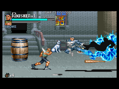 その1:出来るだけ点数の高い攻撃方法を多用する プレイヤーが繰り出す攻撃の多彩さについては、前項で説明した通りですが、その攻撃の中でも、特に点数効率のいい技がいくつか用意されています。 その中で、比較的使用頻度を高くした方がいい技に、流星キック(1000点)や、波動蹴り(1発目600点、2発目1500点)があります。他にも、武器アイテムのランス(貫通性能が高く、1発あたり1500点)、プリティーヘッド(3000点)等が、点数が高いので、積極的に狙っていきたい所です。 逆に、あまり多用しない方がよい攻撃として、通常連続技(100点>100点>300点>700点。合計で1200点になりますが、その分ダメージも多く与えてしまうため、効率が悪い)、ガンモード時の拳銃乱射(一律100点)等が挙げられます。今、例に挙げた二つの攻撃方法は、通常のプレイでは、特に何も考えずに多用している攻撃方法なので、この二つの使用を控えて、流星キック、波動蹴りを多用する方向に切り替えるだけで、随分と点数効率が変わっていく筈です。 なお、パニッシャーの波動蹴りは、ニックのサマーと比べてリーチが短く、通常戦闘で多用するのは、慣れていても危険性が高いです。パニッシャーを使用する際は、流星キックを多用しましょう。パニッシャーの波動蹴りも、隙がニックに比べて少ない為、2面ボスのように一部のシチュエーションではニックを凌駕する事もありますが……。 他にも、波動蹴りを使用した、効率のいい稼ぎ方としてはプリティーボーイを掴んだ状態でサマーを繰り出すと、他の敵キャラの場合、600点の1撃目しか入らずに転倒してしまう為、効率が非常に悪いのですが、プリティーボーイの「どんな攻撃が命中しても、のけぞりはするが、転倒しない」という特性が手伝って、全ての攻撃が命中します(パニッシャーなら3発、ニックなら2発)。ガンモードの拳銃弾のみでプリティーボーイを倒した場合と、波動蹴りを利用して倒した場合では、大体2万点〜3万点の差がでます。当然、普通の倒し方に比べると時間がかかりますので、プリティーボーイが出てくるステージでは、時間切れに注意しながら、極力この点数稼ぎを狙ってみるようにして下さい。 もう一つ、掴みからの波動蹴りを上手に利用する方法を説明します。前述した通り、掴み状態からの波動蹴りは、掴んだ敵に対しては、点数的に損をしてしまう攻撃方法なのですが、波動蹴りのネックになる、1撃目の攻撃判定を、その掴んだ敵一人のみで、完全にうち消してしまう事ができるのです。 敵が密集している場所に、立ち状態で波動蹴りを繰り出した場合、自分との間合いが近い敵全てに、点数の低い600点攻撃が当たった上で、2発目の波動部分が命中する事になり、波動部分のみを当てた時に比べると、ダメージは約2倍、点数は2100点(波動部分2発なら3000点)と、ほぼ同率ダメージである、流星キック2発分とわずか100点しかアドバンテージが無い状態になってしまいます。波動蹴りのリスキーな面を考慮に入れると、これは非常に損をしていると思います。 ですが、敵を掴んだ状態で密集時に波動蹴りを繰り出す事で、点数が下がるリスクを、敵1人のみに減らし、他の敵には点数効率の良い、1500点部分のみを命中させる事ができます。敵が少ない場所で行ったとしても、大した意味はありませんが、3〜5人の敵が密集している場所で行った場合、かなりの効果が期待できます。 パニッシャーの波動蹴りは、元々リーチが短い為、大きな期待はできませんが、ニックにとっては、細かいながらも、全面を通じた点数アップに繋がるテクニックだと思います。 当然ですが、アイテムの入っているオブジェを破壊する際にも、繰り出した技に応じて点数が変化しますので、最後に破壊する際は、波動蹴りの波動部分を積極的に当てて行きましょう。 |