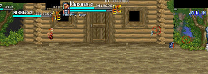 | ガードロイド2の耐久度が半分以下あたりになると、お待ちかねのプリティーボーイ(白)が出現します。 彼が現れたら、やはりガンモードに移行しますので、ガードロイド2以外は完全に無視して、ひたすら銃弾をぶち込んでやりましょう。 最初のお供であるスーツザコ2人は、ガードロイド2にちょっとじゃれつかれただけで死亡してしまう虚弱体質ですが、機械の身体を持つプリティーボーイはそう簡単には死にません。 プリティーボーイが登場するまで、どれだけスーツザコを死なせずにガードロイド2を痛めつけられるかが、ここの攻略の鍵となります。 ザコキャラの延命にさえ慣れれば、肉を持ち込むことが可能なこのボスは、意外と楽に体力パーフェクトを狙えるので、カンスト狙いのプレイヤーは、絶対にここでミスをしないようにがんばってください。 |