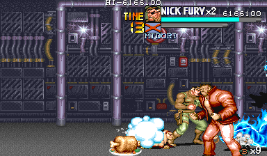 右側へと追いつめた後は、画面外に向けてパンチ連打をしていると彼らはなすすべもなく死んでいくでしょう。 時折、上下方向から逃げられた場合は、適当に捕まえて投げ技などで処刑してやりましょう。 |